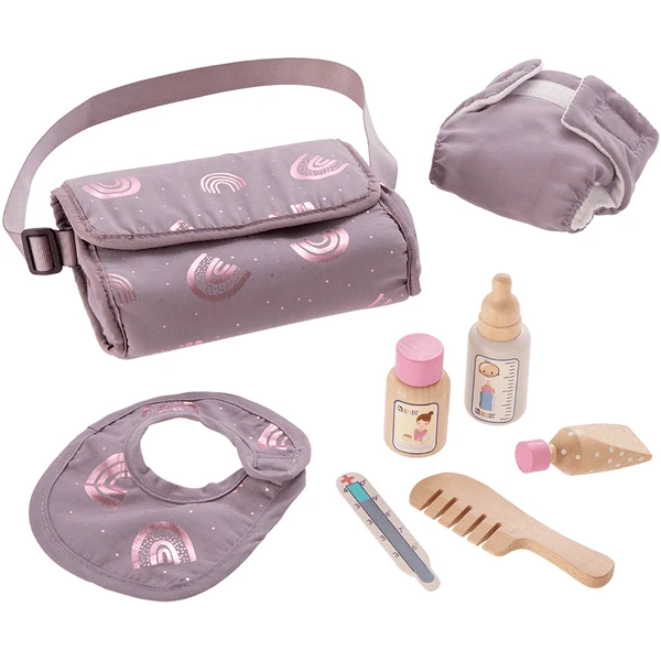 - 6 x accessoires (zuigfles, kam, 2 x crèmetubes, poederdoosje, thermometer)